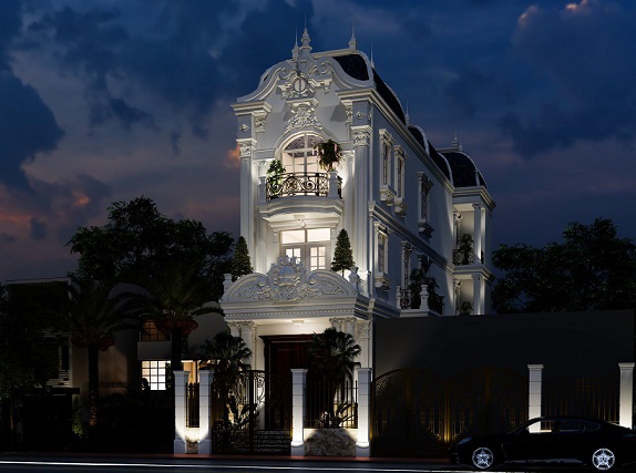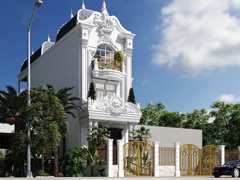 Biệt thự nhà anh được thiết kế theo phong cách tân cổ điển bên ngoài với nhiều hoạ tiết trang trí như 1 toà lâu đài thu nhỏ.