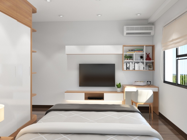 Phòng ngủ sau khi được cải tạo, diện tích nhỏ nhưng cải tạo, sửa chữa sắp xếp lại bố cục nhìn vẫn rộng